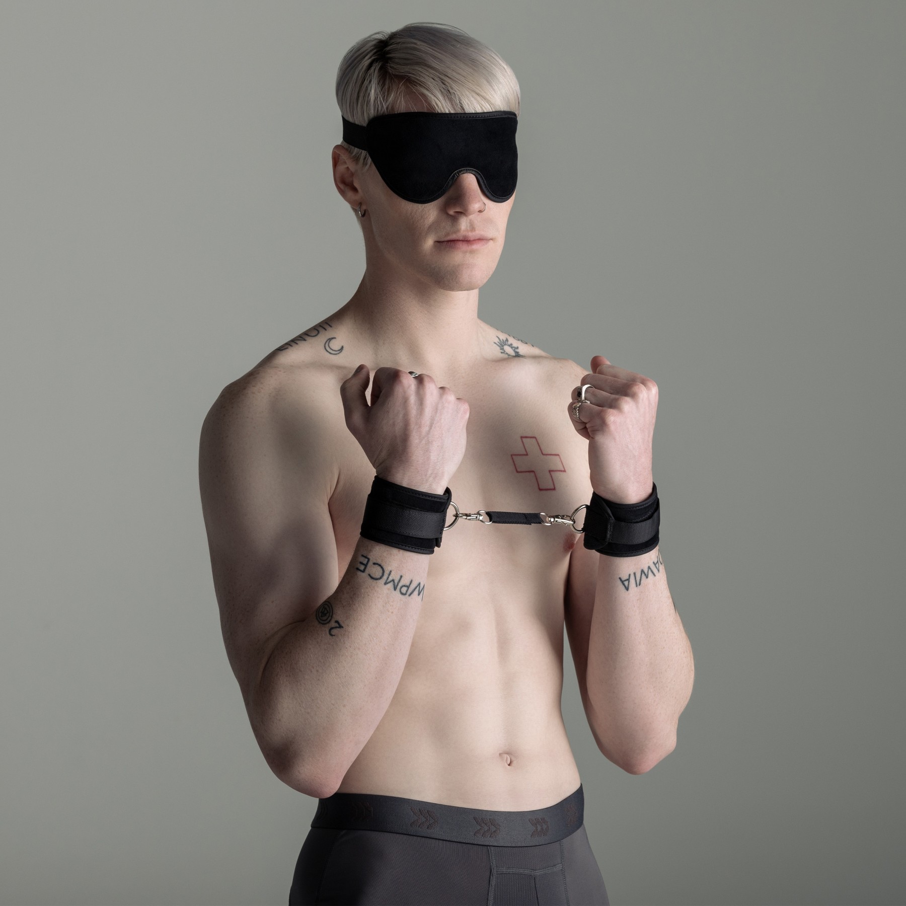 The Bond Cuff and Blindfold Kit by Liberator is about strengthening intimacy and binding couples together. Invigorate your sex life and introduce something wild and new with a seductively smooth blindfold. Crafted from a lush microfiber fabric, the Bond Blindfold makes sliding it on a passionate treat for heightening the senses. The wrist cuffs make the art of letting go an exciting and fun adventure. Constructed to withstand playful restraint, these cuffs can be connected together using the handy clip connectors. Whether you're a beginner or more advanced, this kit is designed to create some fiery heat.