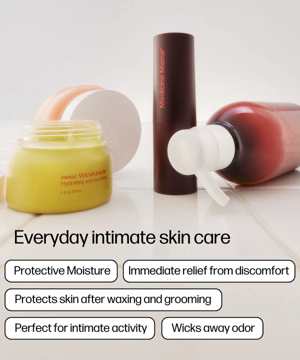 The VMagic Vulva Balm is an all-organic, hormone-free moisturizer crafted to nourish, soothe, and protect delicate vulvar skin. Formulated with cold-pressed oils, beeswax, and Medicine Mama’s signature honey–propolis blend, this rich balm delivers deep hydration and fast relief from dryness, irritation, and discomfort.